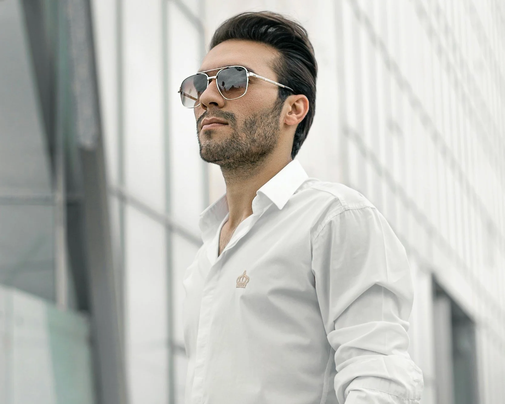 But if it's sunny and it's hot and it's bright, you don't want your retinas getting burned - wear sunglasses, there's nothing wrong with it! I've got a pair of Ray -Bans with a gradient lens, so they're darker at the top and then they grade out so you can still see my eyes, but you get the protection from blocking the sun at the top of the lens. I wear them with a suit every single day. Well, I use those glasses seven days a week.